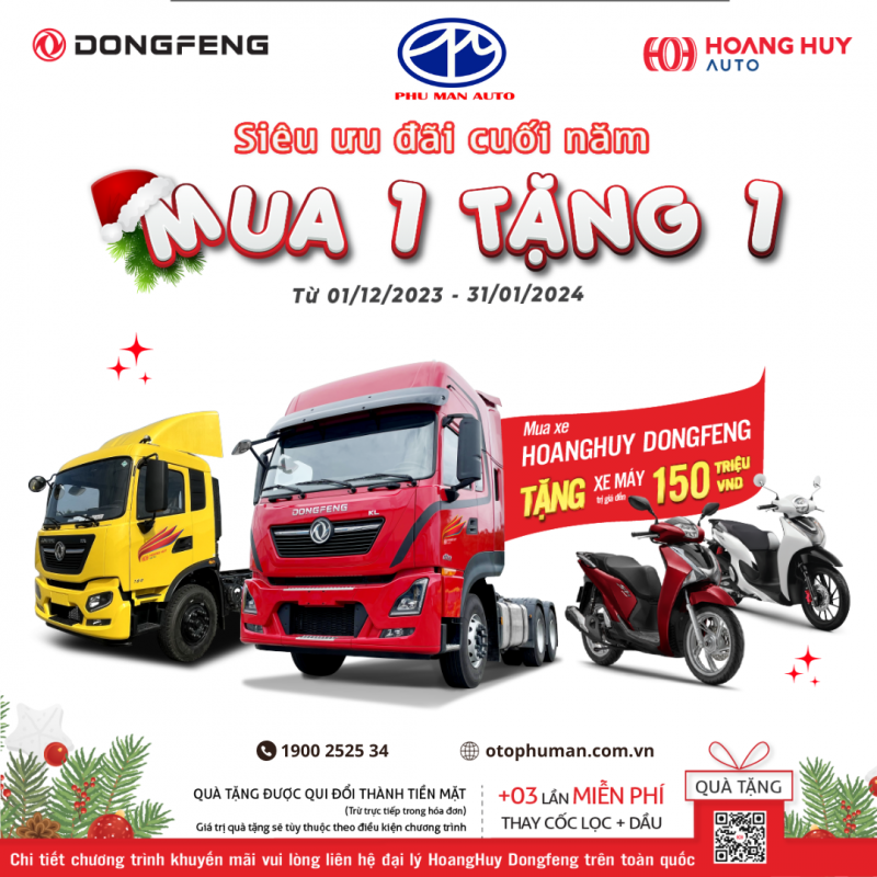 ?? Món quà thiết kế riêng cho mùa Giáng Sinh 2023, mua xe Hoang Huy Dongfeng tặng ngay một chiếc xe máy cực “xịn” cho các bác tài vi vu khắp mọi nẻo đường.